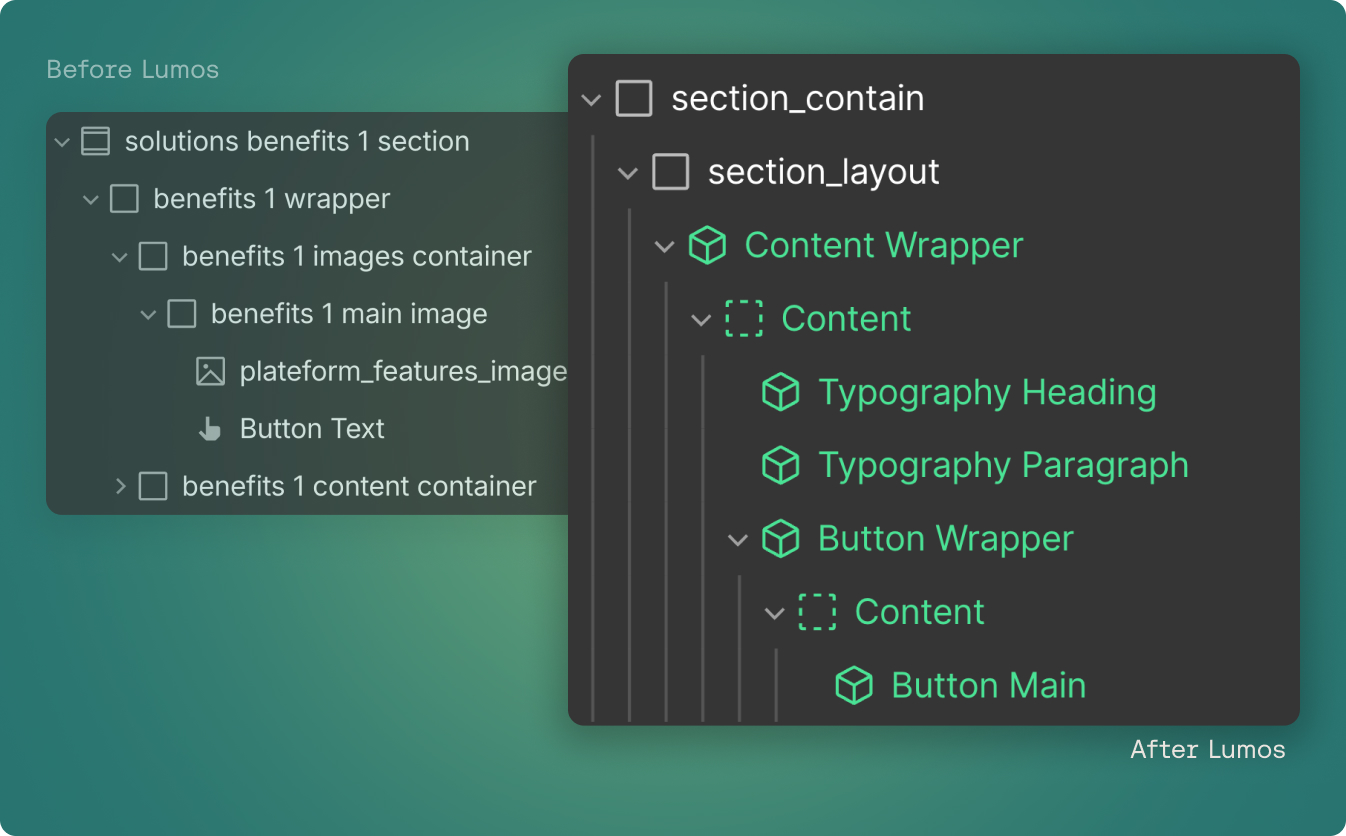 No more messy code and multiplying CSS classes. Lumos structures your project with clear conventions that any developer can understand.